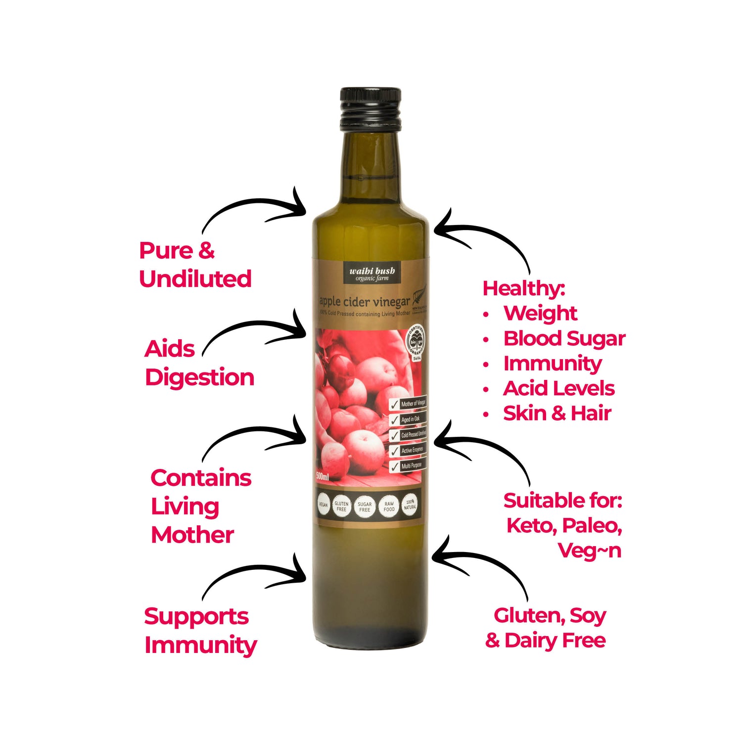 Containing 'the mother' and 100% pure New Zealand whole table grade apples that are cold processed to make our apple cider vinegar is a stunning addition to your kitchen.