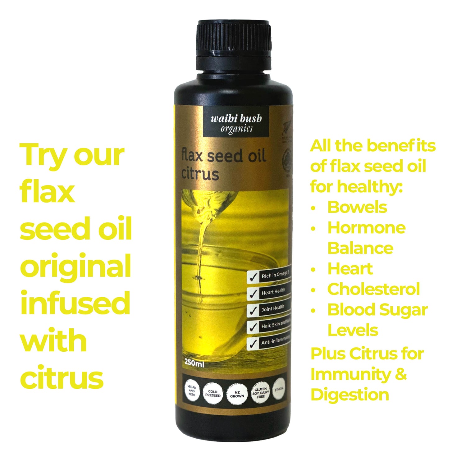 - The Oil: Our pure New Zealand grown, cold pressed and fully traceable Flax Seed Oil Original infused with the delicate flavours of Citrus.