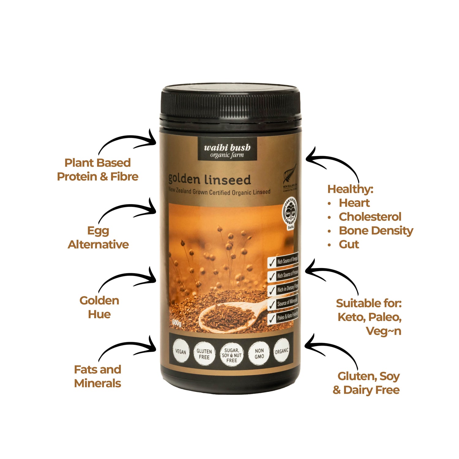 Our Waihi Bush Golden Linseed is certified organic and grown in the Central South Island of New Zealand. It is full of Omega 3, Dietary Fibre, and essential minerals such as potassium, phosphorus, magnesium and calcium.
